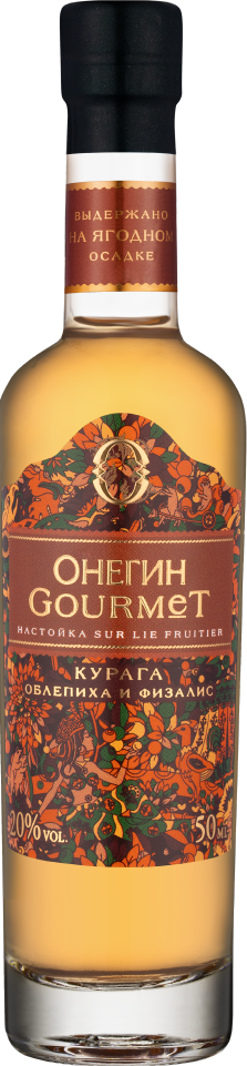 Онегин, "Гурмэ" Курага, Облепиха и Физалис — десертная настойка, в производстве которой используется курага, облепиха и физалис. Настойка изготавливается из натуральных ингредиентов методом "sur lie fruitier" (выдержка на ягодном осадке). В процессе выдержки на осадке элементы купажа эволюционируют, придавая вкусу новые оттенки. Настойку рекомендуется подавать с колотым льдом в широком бокале.