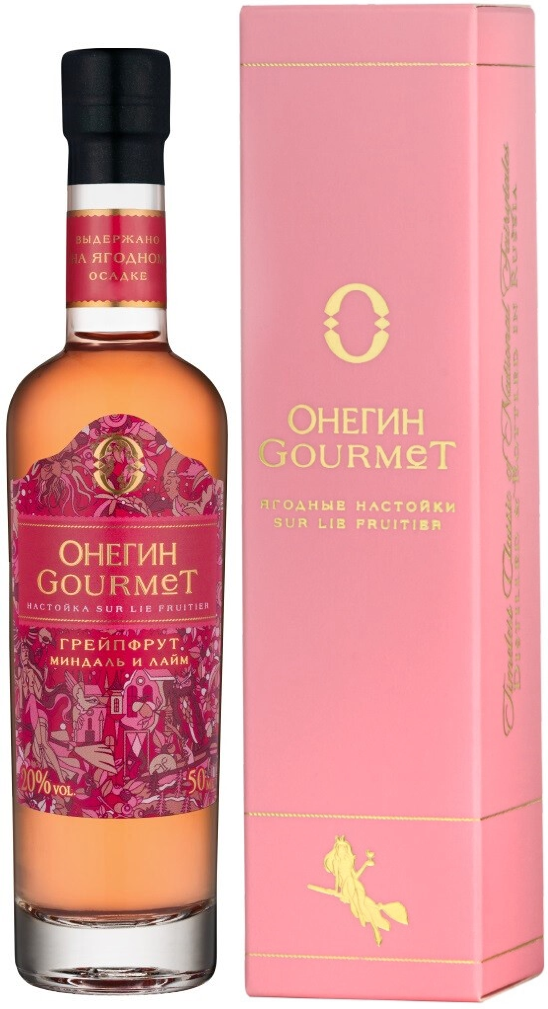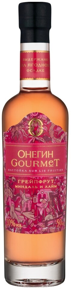 Онегин, "Гурмэ" Грейпфрут, Миндаль и Лайм — ягодная настойка, демонстрирующая смелое сочетание терпкости грейпфрута, нежной сладости миндаля и кислинки лайма. Настойка изготавливается из натуральных ингредиентов методом "sur lie fruitier" (выдержка на ягодном осадке). Благодаря этому в настойке сохраняются мельчайшие ягодные частицы. Подобно настоящим винам, настойка является "живым" продуктом с натуральной замутненностью. Настойку рекомендуется подавать в широком бокале с колотым льдом. В две-три ягоды малины и голубики придадут напитку сказочное очарование.