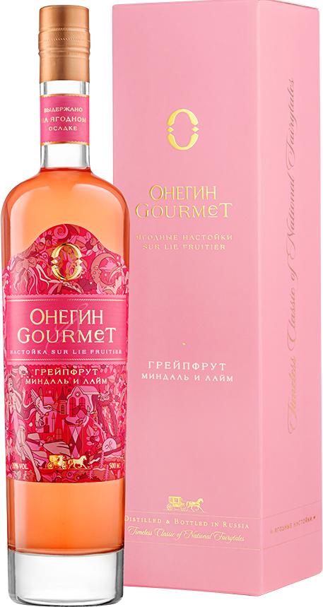 Онегин, "Гурмэ" Грейпфрут, Миндаль и Лайм — ягодная настойка, демонстрирующая смелое сочетание терпкости грейпфрута, нежной сладости миндаля и кислинки лайма. Настойка изготавливается из натуральных ингредиентов методом "sur lie fruitier" (выдержка на ягодном осадке). Благодаря этому в настойке сохраняются мельчайшие ягодные частицы. Подобно настоящим винам, настойка является "живым" продуктом с натуральной замутненностью. Настойку рекомендуется подавать в широком бокале с колотым льдом. В две-три ягоды малины и голубики придадут напитку сказочное очарование.