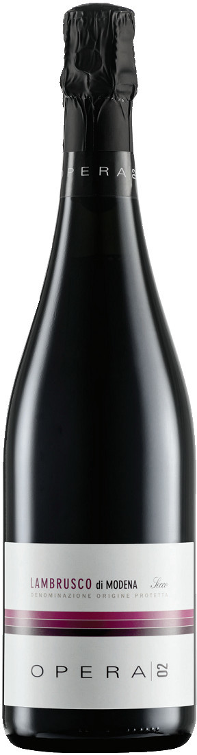 Красное сухое игристое вино "Opera 02" создано из винограда сорта Ламбруско, выращенного органическим методом в Модене. 95% купажа приходится на Ламбруско Граспаросса, а 5% — на Ламбруско Саламино. Почвы участков — глинистые, со значительными включениями илистых отложений и песчаника. Лозы — молодые, высажены в 2004-2008 годах. Собранные в начале сентября ягоды бережно прессуют и отправляют на пятидневную "холодную" мацерацию на кожице при температуре 5 °C. Ферментация со специально отобранными культурами дрожжей проходит в автоклавах (по методу Шарма) при контролируемой температуре 15 °C. Вино "Опера 02" рекомендуется к употреблению через 6-8 месяцев после бутилирования.