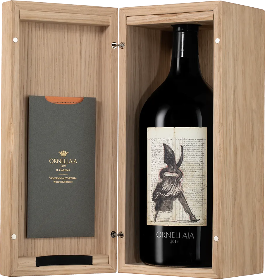 Ornellaia, "Vendemmia d'Artista", 2015 ("Il Carisma") — роскошное красное вино, способное покорить с первых секунд. Для винтажа 2015 года дизайн этикеток разрабатывал южноафриканский художник, William Kentridge. Он получил международное признание благодаря своим рисункам, спектаклям, фильмам и скульптурам, в которых он превращает отрезвляющие политические события в мощные поэтические аллегории. На этикетках изображена человеческий труд, связанный со сбором урожая и производством вина.