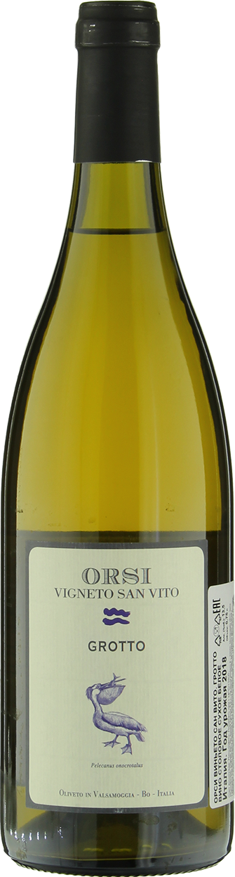 Orsi Vigneto San Vito, "Grotto" — мягкое, интенсивное, свежее натуральное белое вино из винограда сорта Пиньолетто, собранного с лучшего биодинамического виноградника хозяйства в муниципалитете Монтевельо. Урожай собирают в степени полной зрелости и исключительно вручную в небольшие коробки. При винификации применяется самопроизвольное брожение в больших бочках из дуба Алье. В них же вино созревает на осадке в течение 9 месяцев, регулярно производится батоннаж. Перед розливом вино не подвергается осветлению и фильтрации, выдержка в бутылках до выпуска на рынок занимает не менее 6 месяцев.
