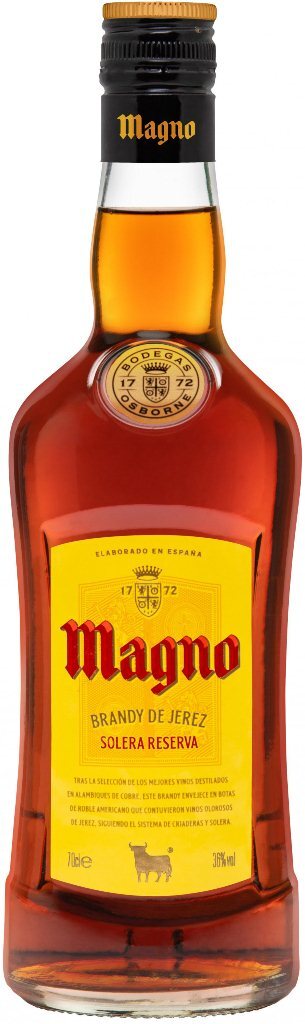 Хересный бренди "Magno" Solera Reserva считают королем испанского бренди. Наиболее выдающейся его характеристикой является удивительно гладкий вкус, что делает этот напиток необычайно популярным. Бренди изготавливается исключительно из лучших дистиллятов компании Осборн по традиционному методу "Solera & Criadera" ("Солера и криадера"), характерному для производства хереса, бренди выдерживается в бочках из американского дуба, в котором ранее выдерживался херес Олороса.