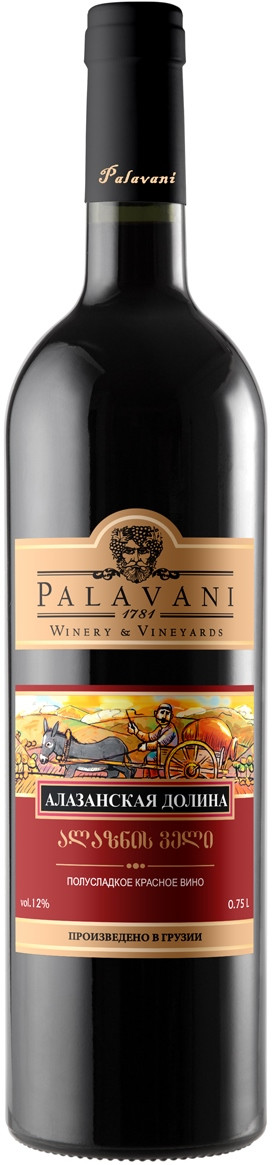 Полусладкое красное вино Palavani, "Alazani Valley" Red, изготовленное из винограда сортов Саперави и Тавквери, производится традиционным способом — после сбора урожая ягоды проходят гребнеотделение и дробление, а затем подвергаются ферментации при контролируемой температуре. Вино "Алазанская долина" обладает приятным фруктовым вкусом и ароматом, оно отлично сочетается с пряными мясными блюдами, острыми сырами и шоколадными пирожными.