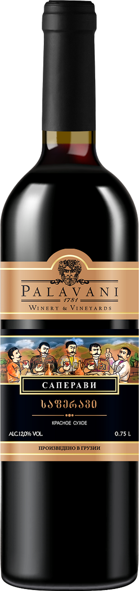 Palavani, Saperavi — красное сухое вино из винограда сорта Саперави, выращенного на виноградниках компании Палавани в регионе Кахетия. Винификация сусла проводится традиционным для красных вин способом, проходящим со строгим температурным контролем. Вино подается к блюдам грузинской кухни, свинине и говядине, колбаскам на гриле, выдержанным сырам, сытным закускам и запеченной утке.