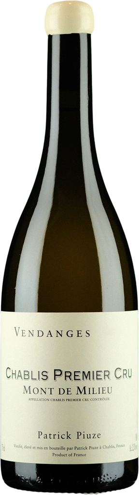 Patrick Piuze, Chablis Premier Cru, Mont de Milieu — изысканное белое сухое вино, в производстве которого используется виноград сорта Шардоне. Ягоды произрастают на винограднике класса Премье Крю "Мон де Мильё". Сборо урожая проводится исключительно вручную, на винодельне плоды подвергаются прессованию с последующей ферментацией с местными дрожжами в стальных чанах. Выдерживается вино 6 месяцев в старых бургундских бочках, а затем — в чанах из нержавеющей стали.