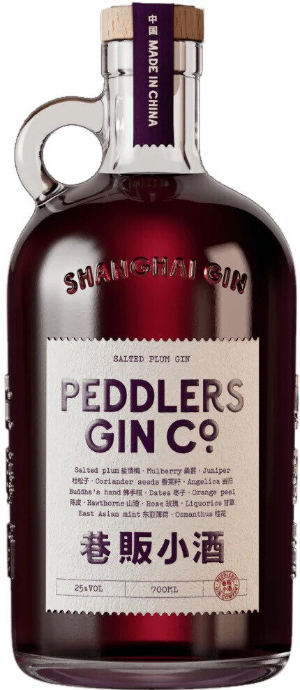 Peddlers, Salted Plum Gin — редкая китайская версия традиционного тернового джина. Традиционный, классический, отмеченный многочисленными наградами шанхайский джин от Peddlers Gin Company настаивается на соленой сливе, шелковице, апельсиновой цедре, восточноазиатской мяте, розе, боярышнике и османтусе, а затем выдерживается в течение месяца в бочках из-под хереса Олоросо, что придает ему изысканно сухое послевкусие с нюансами дуба и ванили. Производитель использует растительные компоненты, которые никогда раньше не смешивались в джине. Органические растения собирают в таких местах, как Сычуань, Юньнань и Ганьсу, для придания джину характерного восточного вкуса. Эти ингредиенты рассказывают историю красоты и разнообразия уникальной природной флоры Китая. "Peddlers" проходит двойную дистилляцию в 500-литровом медном перегонном аппарате. Сначала спирт и большинство ингредиентов помещают в перегонный аппарат для мацерации в течение 24 часов, а затем дистиллируют. При повторной дистилляции восточноазиатская мята и рука Будды (разновидность цитрона) пропитываются паром, чтобы можно было уловить ароматы этих нежных ингредиентов. После выдержки джин разливается в бутылки и маркируется, при этом каждая партия составляет не более 250 бутылок.