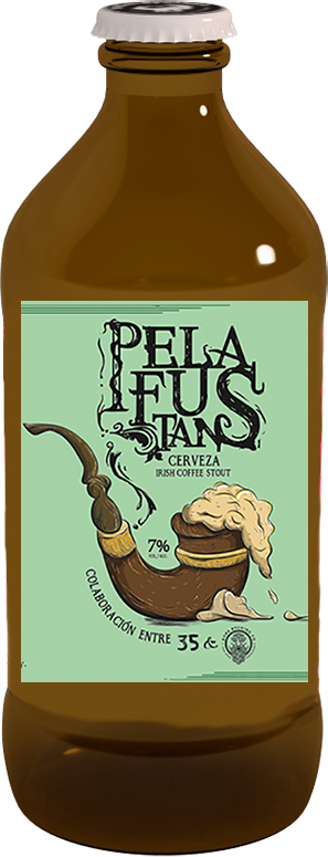 Pelafustan от Treintaycinco - пиво сварено в стиле ирландский кофейный стаут (Irish Coffee Stout). Бесстыдно и льстиво... Наш ирландец груб и флегматичен, не верит ни в счастливый клевер, ни в горшки с золотом на другом конце радуги. Он живет наудачу и бродит по улицам, дымя трубкой, в поисках своего любимого бара. Он сидит один, наблюдая за окружающей обстановкой и ночью, наслаждаясь ее зельем. Можно подумать, еще одна пропащая душа. Это пиво со временем становится только лучше, не бойтесь попробовать настоящую выдержку.