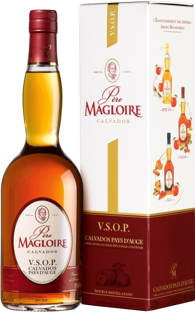 Кальвадос "Pere Magloire" VSOP создается на территории Calvados du Pays d’Auge, в самом сердце Нормандии. Для создания "Pere Magloire" VSOP мастера купажа используют удивительно легкие и ароматные спирты, которые выдерживались в дубовых бочках не менее 4-х лет. За свой неповторимый вкус "Пэр Маглуар" В.С.О.П. удостоен множества наград на всемирно известных конкурсах, вот лишь немногие из них: серебряная медаль на Конкурсе Вин и Спиртных Напитков в Сан-Франциско в 2009 году, серебряная медаль на международном Конкурсе Вина & Спиртные напитки в США в 2007 году и золотой медали на Всеобщем Конкурсе в Париже в 2006 году.