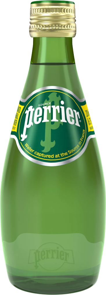 Perrier — сильногазированная минеральная вода премиум-класса, которая добывается на юге Франции в Долине Вогезы. Источник "Les Bouillens" был известен своими целебными свойствами с античных времен. Вода обладает исключительной бактериологической чистотой и карбонизуется (газируется) естественным способом подземными вулканическими газами. Этот освежающий, бодрящий напиток с умеренным содержанием минеральных веществ (кальций, натрий, магний, калий) не содержит консервантов и сахара и способствует пищеварению. Целебные свойства воды признаны французской Медицинской Академией. Вода "Перрье", разливающаяся в зеленые бутылки уникальной формы, во всем мире стала синонимом здорового образа жизни.