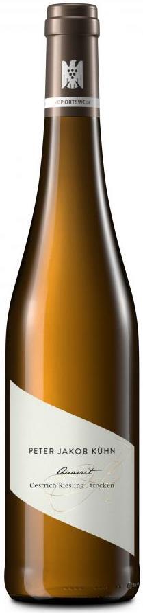 Peter Jakob Kuhn, Quarzit, Oestrich Riesling Trocken — сухое белое вино, которое изготавливают из винограда сорта Рислинг. Виноградники компании имеют хорошее месторасположение, они произрастают на южных склонах с лессово-суглинистой кварцевой почвой, что благоприятно влияет на вкусовые качества урожая. Зрелые ягоды собирают вручную, после тщательной сортировки на винодельне их подвергают бережному прессованию. Ферментация сусла с кожицей проходит без добавления дрожжей и регулирования температуры. Зреет вино в 225-литровых дубовых бочках на протяжении 3-х лет.