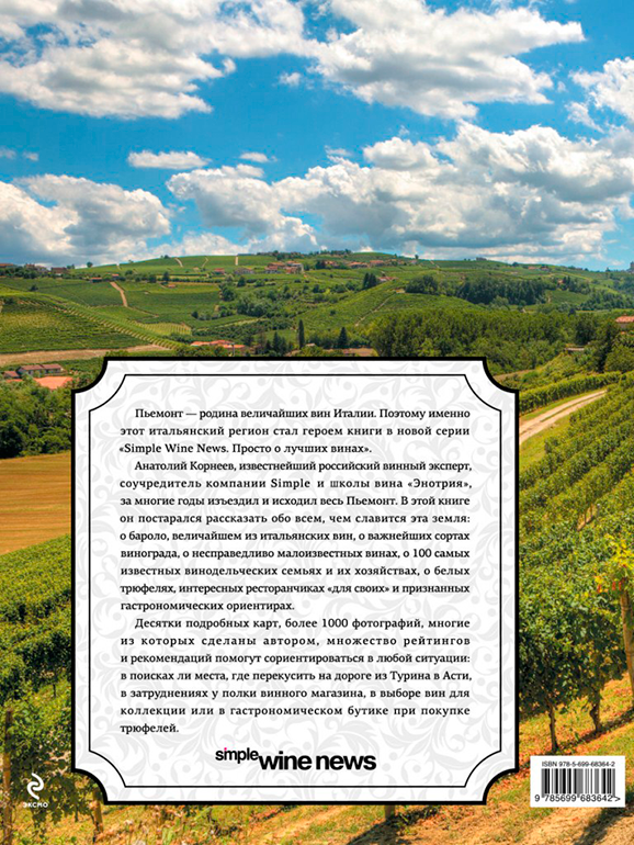 Пьемонт - родина величайших вин Италии. Поэтому именно этот итальянский регион стал героем книги в новой серии Simple Wine News. Анатолий Корнеев, известнейший российский винный эксперт, соучредитель компании Simple и Школы вина "Энотрия", за многие годы изъездил и исходил весь Пьемонт. В этой книге он постарался рассказать обо всем, чем славится эта земля: о бароло, величайшем из итальянских вин, о важнейших сортах винограда, о несправедливо малоизвестных винах, о 100 самых известных винодельческих семьях и их хозяйствах, о белых трюфелях, интересных ресторанчиках "для своих" и признанных гастрономических ориентирах.