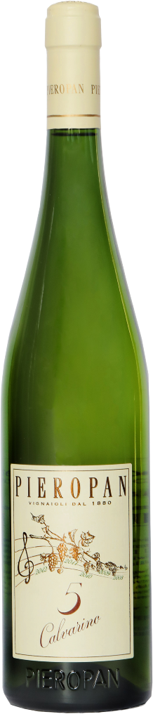 Pieropan, Calvarino 5 — уникальное и неповторимое вино с выраженным средиземноморским характером, выпущенное ограниченным тиражом, первое вино коллекции Vini dell'Anima, появившееся в результате совместного проекта Леонилдо Пьеропана и его сыновей Дарио и Андреа. Это вино представляет собой смесь пяти винтажей "Кальварино" (2008-2009-2010-2011-2012), выдержанную не менее 10 лет в цементных чанах. "Calvarino" 5 является аутентичным выражением лоз Гарганега и Треббьяно ди Соаве, взращенных на вулканических почвах, богатых базальтом и туфом океанического происхождения, на высоте 200-300 метров над уровнем моря. Гарганега придает вину структуру и кислотность, а Треббьяно ди Соаве — богатство вкуса и аромата. Участки имеют западную экспозицию. Возраст виноградных лоз колеблется от 30 до 60 лет. На виноградниках применяются исключительно органические методы. Буквально, название вина означает "маленькая Голгофа". Такое имя было выбрано из-за крутизны склона виноградника, на котором выращивается урожай для создания вина, и сложностей, связанных с его обработкой.