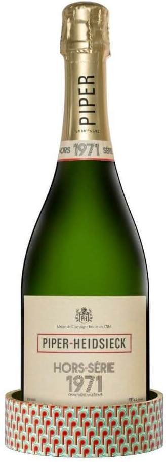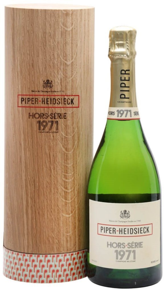 Piper-Heidsieck, "Hors-Serie", Champagne AOC, 1971 — уникальное шампанское полувековой выдержки, выпущенное в 2021 году ограниченным тиражом. Это кюве отражает многолетний опыт главных виноделов Пайпер-Хайдсик, ведь каждый из них внес свою лепту в купаж. Каждая бутылка пронумерована и помещена в роскошный футляр из французского дуба.