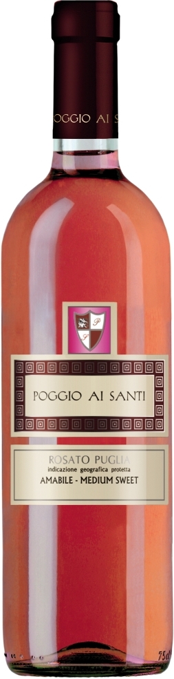 Розовое сухое вино "Poggio Ai Santi" Rosato Medium Sweet, Puglia производится из сортов Санджовезе и Неро Д`Авола. Ягоды поддаются мягкому прессованию с последующей ферментацией при контролируемой температуре 18-20°С в чанах из нержавеющей стали. Потенциал вина составляет 2-3 года. Лучше всего употреблять вино охлажденным до 8-10°С в тандеме с легкими блюдами из рыбы или белого мяса, а таже овощными супами.