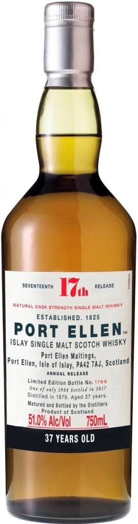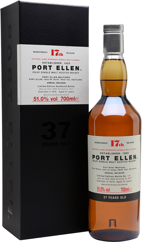 Port Ellen, 37 Years Old, 17th Release — элегантный, сложный и, на сегодняшний день, самый старый виски из серии, был дистиллирован в 1979 г, а бутилирован в 2017 г. Виски созревал 37 лет в бочках из американского белого дуба. Каждая бутылка Порт Эллен 37 лет уникальна и обладает порядковым номером. В свет было выпущено всего 2988 бутылок этого виски. Из-за того, что с каждым выпуском Порт Эллен остается все меньше бочек, то каждый релиз может стать последним, что добавляет виски еще больше ценности.