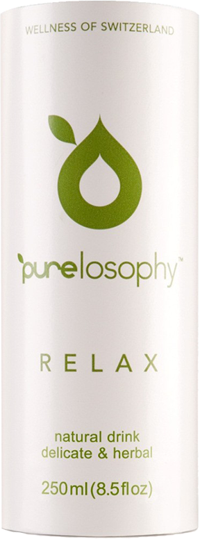 Purelosophy Relax (Пьюлософи Релакс) — расслабление с деликатным вкусом цитрусовых и травяных ноток мелисы, цветов лаванды с легким прикосновением перечной мяты и кисло-сладким вкусом киви. Согласно проведенным исследованиям во Франции и Италии, содержащаяся в составе напитка мелиса лекарственная снимает стресс, на 32% снижает напряжение, на 72% снижает признаки стресса (беспокойства), на 60% снижает бессонницу. Употребляя всего 2 баночки Purelosophy Relax в день, Вы восполните дневную норму экстракта мелисы и обреете равновесие и спокойствие.