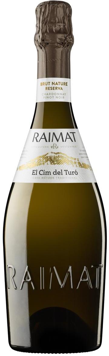 Белое игристое вино Raimat, Brut Nature Reserva, El Cim Del Turo создано из купажа винограда сортов Шардоне и Пино Нуар, выращенных в регионе Кава. После прессования сусло проходит этап холодной фильтрации. Это позволяет максимально сохранить аромат будущего вина. Затем сусло переливают в резервуары из нержавеющей стали с системой охлаждения, где при температуре 16-18 °С происходит ферментация. После алкогольной ферментации вино декантируют еще раз и разливают по бутылкам для вторичной ферментации, а затем минимум на 9 месяцев помещают в подвал для старения. "Брют Натюр" Шардоне-Пино Нуар прекрасно в качестве аперитива и в сопровождении блюд из белого мяса, рыбы, ризотто и пасты.