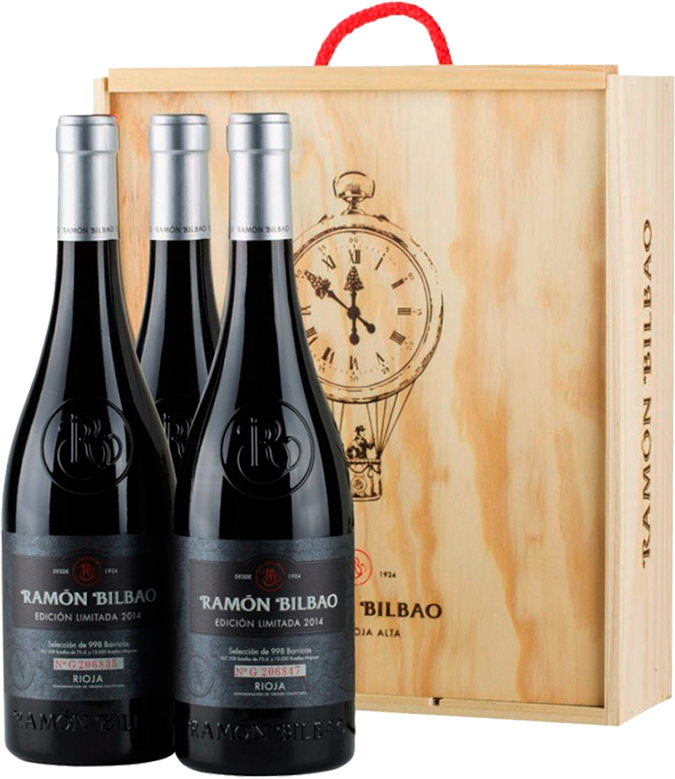 Вино Ramon Bilbao, Edicion Limitada, Rioja, Set of 3 bottles, in wooden box