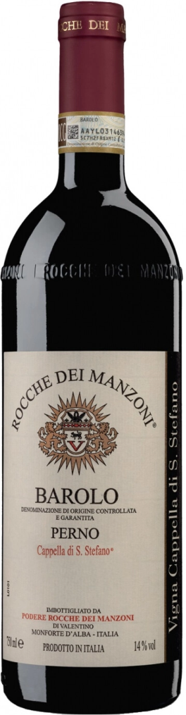 Rocche dei Manzoni, Barolo Perno "Cappella di Santo Stefano" — роскошное, хорошо сбалансированное вино из винограда сорта Неббиоло, который выращивается в Перно на историческом винограднике "Каппелла ди Санто Стефано", одном из старейших в Ланге, принадлежавших Ватикану. Из реестров Ватикана видно, что виноградники на этом месте выращивались с 1200 года. На вершине холма в Перно стоит деревенская часовня романской эпохи, в честь которой виноградник и получил свое название. Почва "Каппелла ди Санто Стефано" имеет известняковую основу, но именно песок в составе почвы придает вину из выращиваемого здесь Неббиоло гораздо более широкий и постоянно развивающийся аромат.