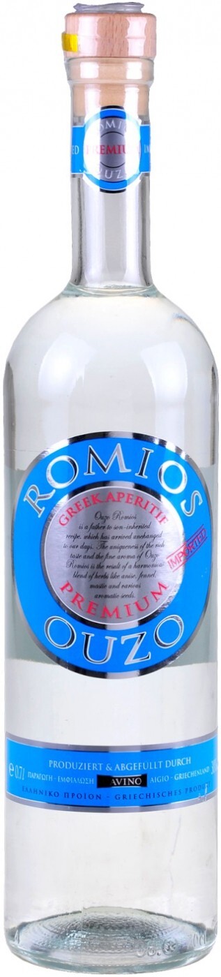 Ouzo Romios — традиционная греческая водка, которая производится методом перегонки этилового спирта с добавлением аниса и трав. Выдержка осуществляется в течение нескольких месяцев. При добавлении воды Узо становится молочно-белого цвета, при охлаждении напитка до ниже +15°C появляется характерный осадок. Пить Ouzo Romios нужно из высоких узких стаканов объемом 50-100 мл с добавлением небольшого количества льда или воды.