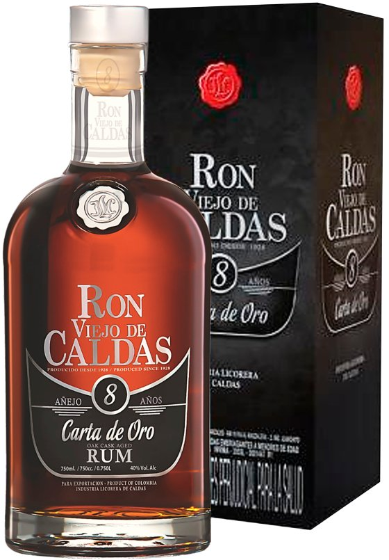 Колумбийский ром "Viejo de Caldas" Carta de Oro 8 Years Old — колумбийский ром, вызревший в бочках из-под бурбона в течение 8 лет. Он обладает зрелым вкусом с насыщенными оттенкам какао, сливок и ванили. Его благородный янтарный цвет отливает красным деревом. В аромате доминируют тона дорогого спирта и фруктов. Этот ром рекомендуется сервировать как самостоятельный напиток. В 2010 и 2012 он завоевал 3 звезды на конкурсе "STA" в Бельгии.