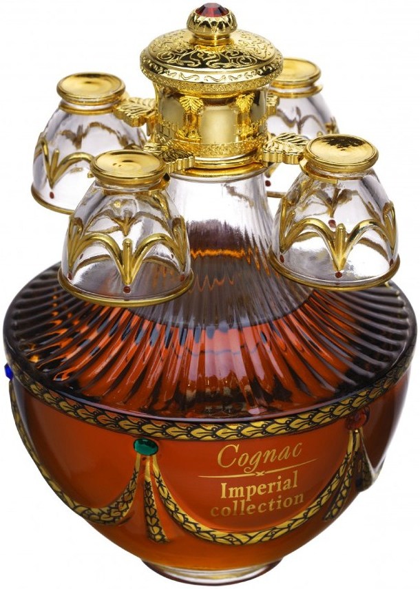 Roullet, Hors d'Age Grande Champagne 1-er Cru, Imperial Collection, «Faberge Egg», Onyx - олицетворяет собой опыт и заботу настоящих мастеров своего дела, которые смогли проявить в нем уникальные характеристики одного из лучших регионов Франции Гран Шампань, являющегося родиной выдающихся коньяков. Этот коллекционный элитный напиток был составлен из раритетных спиртов 1975 года Гуле- де-Фусиньяк, прошедших выдержку в течение 40 лет. Такому напитку стоит уделить особое внимание и наслаждаться им медленно, не торопясь, позволив ему раскрываться в бокале. Коньяк разливают в графин, который изготовлен из венецианского стекла, декорирован разноцветными камнями и натуральной позолотой. Уникальный футляр, выполненный в форме яйца работы всемирно известного Карла Фаберже, с первых секунд привлекает к себе внимание. Футляр-яйцо покрыт эмалью и украшен аналогично графину. В набор также входят 4 рюмки, изготовленные вручную из венецианского стекла, и прикрепленные на кронштейн золотистого цвета.