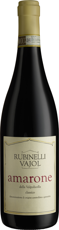 Rubinelli Vajol, Amarone della Valpolicella Classico — изысканное красное сухое вино, которое производится из винограда сортов Корвина и Корвиноне с небольшим добавлением сортов Рондинелла, Оселета и Кроатина, выращиваемых в регионе Венето на северо-востоке Италии. Сорт Корвина играет главную роль в этом купаже, сообщая вину свежую кислотность, оттенки вишни и насыщенный рубиново-красный цвет. Рондинелла формирует тело вина и еще больше подчеркивает нежную пряность сорта Корвина. Остальные сорта гармонично дополняют композицию, добавляя богатства и глубины. Amarone della Valpolicella считается самым престижным вином региона, по легенде произведенным случайно по невнимательности винодела. В ней говорится, что при производстве Recioto виноград был переизюмлен, а вино — забыто в бродильной камере. В результате сахар перебродил и вместо сладкого вина получилось горькое ("amaro" по-итальянски — горький).