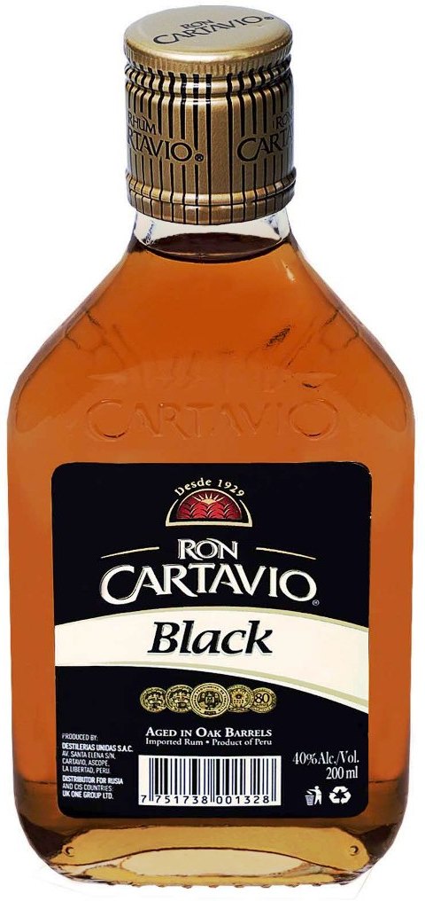 Ром "Cartavio" Black производится в Перу из сахарного тростника наивысшего качества. Компания-производитель применяет автоматизированное управление процессом производства с контролем на каждом этапе и уникальные технологии купажирования. После дистилляции ром выдерживается в дубовых бочках два года. Затем он смешивается с 9 различными типами рома, выдержанными от 2-х до 5 лет. Ром "Картавио" Блэк получил несколько высоких наград на международных конкурсах. И новички, и опытные знатоки рома признают его изысканный вкус.
