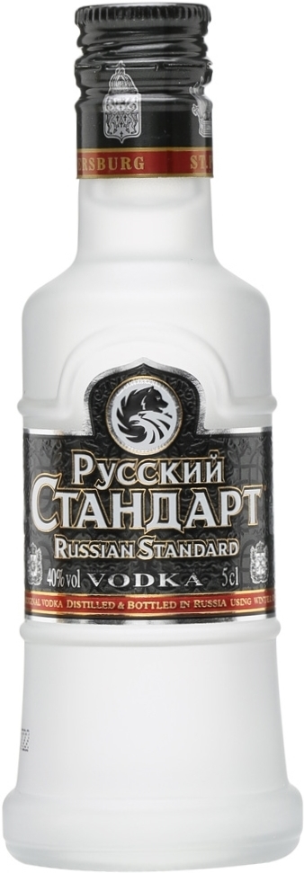 Русский стандарт — водка премиум класса, изготовленная по оригинальному рецепту Д.И. Менделеева. Ее популярность объясняется использованием чистейшей ледниковой воды Ладожского озера, лучшей отборной озимой пшеницы и новейших технологий производства. Уникальная форма бутылки заимствована у Царь-Колокола, и напоминает его форму.