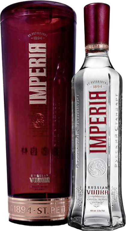 Лидер по производству водки класса "премиум" — компания "Русский Стандарт" решила не останавливаться на достигнутом и в 2004 году представила на рынок водку класса "супер-премиум" — "Империя". Для ее производства используют только озимую пшеницу лучших твердых сортов Черноземья, а основой служит мягкая вода уникального Ладожского озера. После завершения процесса ферментации проводится восьмикратная дистилляция, что позволяет получить наичистейший спирт. Затем уже готовая водка проходит многоступенчатую очистку. Сначала она четырежды фильтруется через уголь, а затем еще дважды через уральский кварц, благодаря чему и приобретает уникальный мягкий и бархатистый вкус.