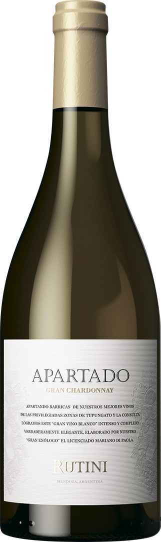 Rutini, "Apartado" Gran Chardonnay имеет в своем купаже небольшой процент винограда сорта Вионье, который способен тонко дополнить структуру и букет. Это энергичное, ароматное вино будет красиво развиваться с возрастом. Виноград собран вручную на пике зрелости и тщательно отсортирован. Хороший баланс сладости и кислотность — результат влияния перепада суточных температур. Ферментация и выдержка на тонком осадке проводятся в дубовых бочках. Винтаж был изготовлен в количестве всего 6000 бутылок.