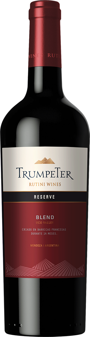 Rutini, "Trumpeter" Blend Reserve представляет собой хорошо сбалансированное вино, в котором ярко выражено богатство каждого сорта. 30% Темпранильо отвечает за зрелые тона черных фруктов и танины, 35% Мальбек — за оттенки черной смородины и аниса, гладкие танины и округлость текстуры, 35% Каберне Совиньон — за структурированность, стойкость и длительность послевкусия и сложные переплетения намеков перца и сухих листьев.