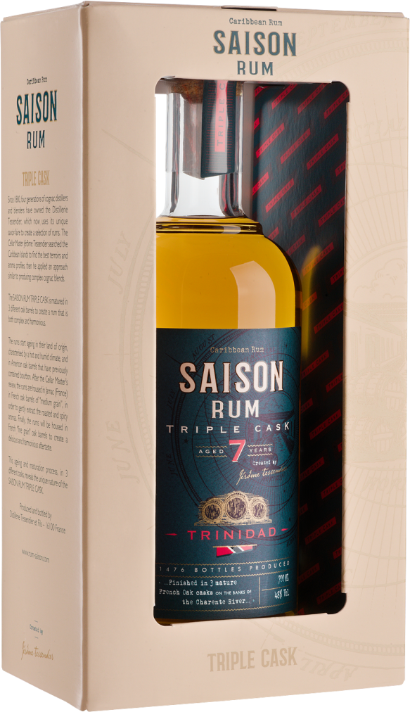 Для рома Saison, Triple Cask, Trinidad, 7 Year Old - Жером Тессендье отбирает лучшие дистилляты на основе сахарного тростника на Тринидаде. Изначально спирты выдерживаются минимум пять лет в бочках из-под бурбона на Тринидаде. Затем различные партии выдержанного рома приезжают во Францию, в провинцию Коньяк, где купажируются и дополнительно выдерживаются 24 месяца сначала в бочках из французского дуба «средней зернистости» для извлечения слегка обжаренных и пряных ароматов, а после в бочках из «мелкозернистого» дуба, чтобы создать изысканное и гармоничное послевкусие. По окончании выдержки добавляется дистиллированная вода для снижения спиртуозности до 48%. Колоранты не применяются.