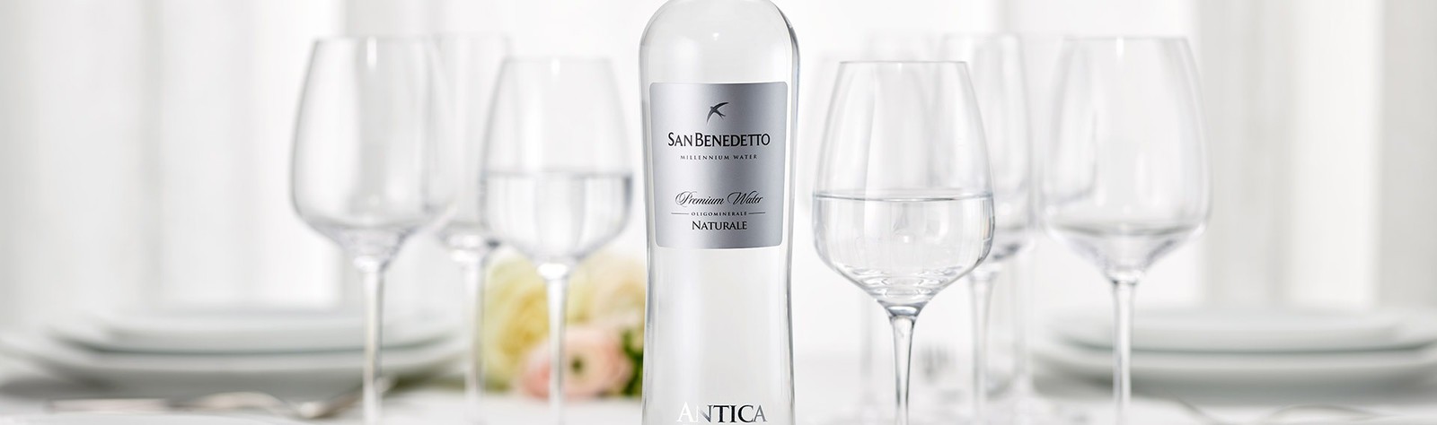 Вода San Benedetto, "Antica Fonte della Salute" имеет низкий уровень минерализации и являет собой прекрасный баланс минералов и минеральных солей. Глубина водоносного горизонта тысячелетнего происхождения составляет 236 метров, что дает воду необычайной чистоты. Она имеет содержание нитратов менее 0,00001%. Чистоту и уникальность воды подчеркивает эксклюзивная, престижная, элегантная стеклянная бутылка. На логотипе компании, изображенном на этикетке каждой бутылки, можно увидеть ласточку, символизирующую Венеру — богиню материнства.