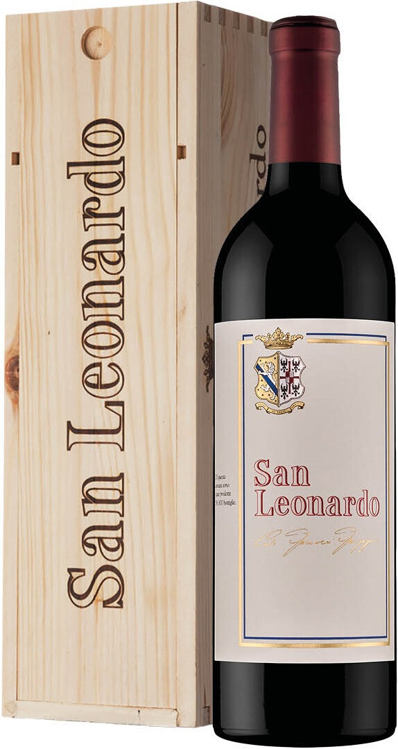 Tenuta San Leonardo, San Leonardo — флагманское вино маркизов Guerrieri Gonzaga. Это восхитительное вино производится только в самые урожайные и успешные годы. Удачный купаж Каберне Совиньон, Каберне Фран и Мерло демонстрирует превосходные вкусовые качества и насыщенный ароматический букет. Виноградники расположены на богатых гравием и песком почвах. Урожай бережно собирают вручную. Каждый сорт винограда проходит отдельную ферментацию. После купажирования полученный продукт медленно ферментируют и настаивают на кожице. Выдерживают вино в барриках 24 месяца и 18 месяцев в бутылках. San Leonardo рекомендуется перед подачей декантировать в течение 2-х часов и употреблять охлажденным до 16-18 °С.