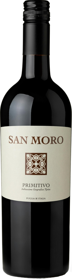 San Moro, Primitivo — элегантное красное сухое вино, в производстве которого виноделы используют виноград сорта Примитиво. Ягоды произрастают на виноградниках компании на песчано-известковых почвах. Сбор урожая проводится в момент оптимальной спелости ягод, на винодельне плоды подвергаются прессованию с последующей винификацией, которая включает ферментацию и малолактическое брожение в стальных резервуарах со строгим температурным контролем. Наиболее полно вино раскроет свои органолептические характеристики при температуре 16–18°С.
