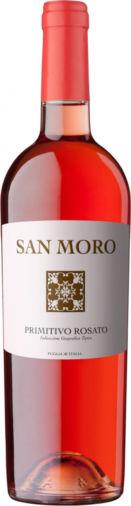 San Moro, Primitivo Rosato — элегантное розовое сухое вино из винограда сорта Примитиво, выращенного в Апулии на песчано-известковых почвах. Сбор урожая проводится в момент оптимальной спелости ягод. Винификация начинается с мацерации на кожице для получения будущим вином красивого розового цвета. Затем следуют деликатное прессование, отстаивание сусла при низкой температуре и ферментация в стальных резервуарах. Вино лучше всего употреблять умеренно охлажденным (до температуры 11–13°C) с овощными блюдами, салатами, легкими закусками или в чистом виде.