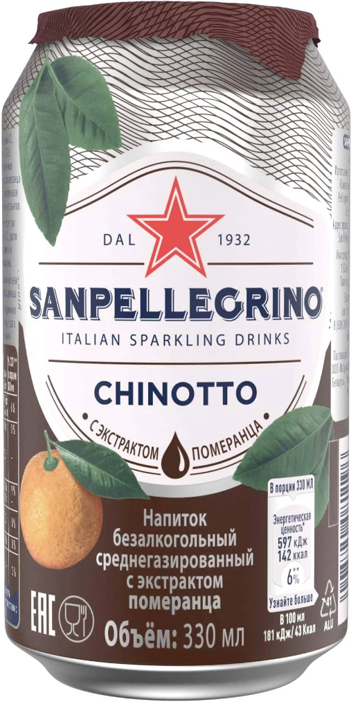 San Pellegrino, Aranciata Amara, in can, 0.33 л.