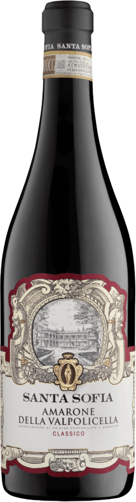 Santa Sofia, Amarone della Valpolicella Classico — роскошное красное вино, в производстве которого виноделы используют виноград сортов Корвина, Молинара и Рондинелла. Ягоды произрастают на виноградниках компании в регионе Венето. По окончании сбора урожая плоды отправляются на винодельню для дальнейшей подсушки методом "аппассименто" в хорошо проветриваемых помещениях в течение 80-100 дней. Винификация проводится в стальных резервуарах со строгим температурным контролем. Выдерживается вино в течение 12-18 месяцев в больших бочках из Славонского дуба объемом 15 и 50 гл. После бутилирования вино дополнительно выдерживается в бутылках в погребах винодельни на протяжении полугода.