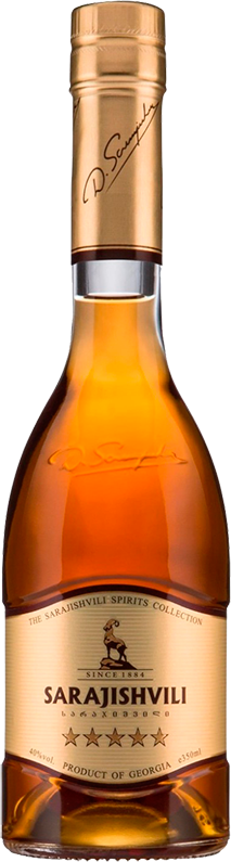 Сараджишвили 5* изготовлен по классическому методу с использованием нескольких видов коньячных спиртов, минимальный возраст которых достигает 5 лет.