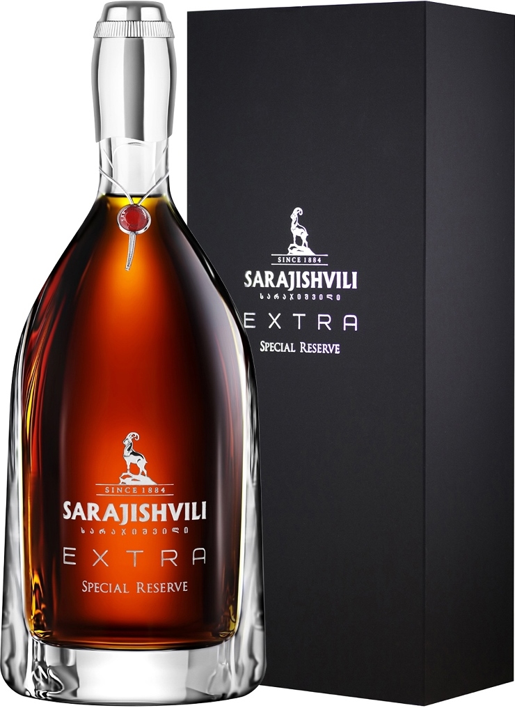 Sarajishvili Extra — изысканный грузинский коньяк с мягким вкусом и благородным, выдержанным характером. Его создают из дистиллятов, изготовленных на основе уникальных сортов выращенного в Грузии винограда. Возраст коньячных спиртов, используемых в производстве коньяка, составляет 25 лет. При этом все дистилляты подвергались выдержке в дубовых бочках, благодаря чему напиток приобрел изысканный, бархатистый вкус и чарующий аромат с нотами специй.