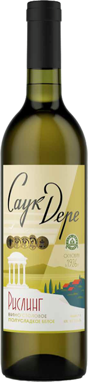 Белое вино "Sauk-Dere" Riesling принадлежит к линейке полусладких моносортовых вин хозяйства "Саук-Дере". Создается из выращенного в регионе Саук-Дере (Крымский район Краснодарского края) сорта Рислинг. Предгорный терруар и преобладающий здесь теплый солнечный климат способствуют выращиванию традиционных красных и белых сортов винограда, из которых создают достойные моносортовые и ассамбляжные вина. "Саук-Дере" Рислинг обладает свежим ароматом с нотками цитрусовых и пикантным фруктовым вкусом. Оно хорошо сочетается с блюдами из рыбы, морепродуктами, овощами и пикантными сырами. Этикетка вина выполнена в стиле рисунков 60-х гг. ХХ века, ее дизайн напоминает об отдыхе на Черноморском побережье.