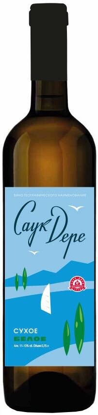 Белое сухое вино "Sauk-Dere" White Dry принадлежит к линейке ассамбляжных вин хозяйства "Саук-Дере". Создается из классических белых сортов винограда, выращенных в регионе Саук-Дере (Крымский район Краснодарского края). Предгорный терруар и преобладающий здесь теплый солнечный климат способствуют выращиванию традиционных красных и белых сортов винограда, из которых создают достойные моносортовые и ассамбляжные вина. "Саук-Дере" белое сухое обладает чистым, освежающим ароматом и легким фруктовым вкусом. Оно хорошо сочетается с блюдами из овощей и рыбы, удачно дополнит осощи и морепродукты. Этикетка вина выполнена в стиле рисунков 60-х гг. ХХ века, ее игривый, морской дизайн напоминает об отдыхе на Черноморском побережье.