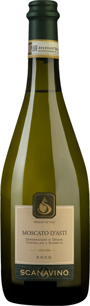 Scanavino, Moscato d'Asti — белое сладкое сортовое вино, для производства которого используется сорт винограда Москато Бьянко, выращенный в регионе Пьемонт. Виноградники расположены невысоко над уровнем моря и хорошо обдуваются морским бризом, что оказывает благоприятное влияние на созревание винограда. Ягоды аккуратно пресуются и полученная мезга оставляется на краткую мацерацию при контролируемой температуре. Затем происходит алкогольная ферментация, которая останавливается принудительно при достижении необходимого содержания остаточного сахара. Стабилизация и созревание вина протекает в стальных танкерах. Потенциал хранения вина составляет 3-5 лет.