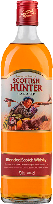 Scottish Hunter — купажированный шотландский виски с приятным фруктовым ароматом и округлым, согревающим вкусом, созданный из спиртов, выдержанных в бочках из дуба не менее 36 месяцев. Есть легенда, что виски назван так в честь молодого шотландца по фамилии Хантер, который в 1868 году решил отправится в Африку, повидать ее просторы, населенные дикими животными, и, конечно же, поохотиться. В дорогу за приключениями он прихватил с собой только ружье отца марки "James Purdey & Sons" и своего любимого пса породы шотландский сеттер.