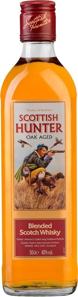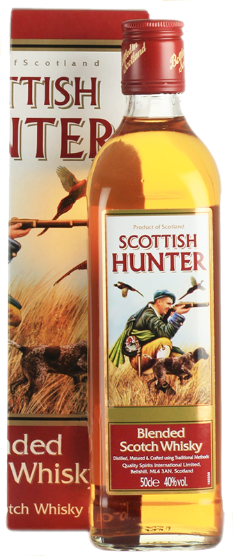 Scottish Hunter — купажированный шотландский виски с приятным фруктовым ароматом и округлым, согревающим вкусом, созданный из спиртов, выдержанных в бочках из дуба не менее 36 месяцев. Есть легенда, что виски назван так в честь молодого шотландца по фамилии Хантер, который в 1868 году решил отправится в Африку, повидать ее просторы, населенные дикими животными, и, конечно же, поохотиться. В дорогу за приключениями он прихватил с собой только ружье отца марки "James Purdey & Sons" и своего любимого пса породы шотландский сеттер.