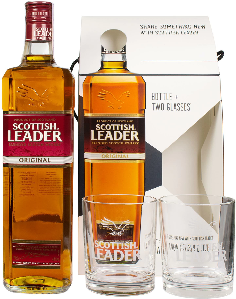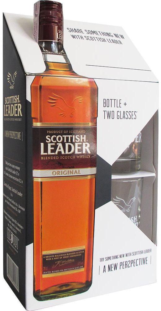 Виски Scottish Leader, Original, with 2 glasses in gift box, 0.7 л.