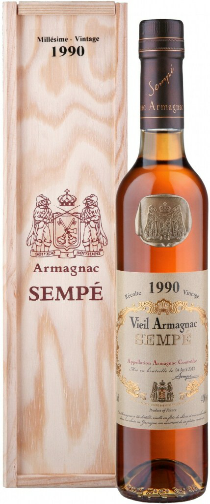 Sempe, Vieil Armagnac, Vintage 1990 — роскошный арманьяк, изготовленный из дистиллятов разных сортов белого винограда и выдержанный в бочках из гасконского дуба. Арманьяк не подвергается энологической обработке. Дата розлива каждого винтажа определяется индивидуально работником погреба. На этом этапе он смешивает несколько видов арманьяка различного срока выдержки и способа изготовления.