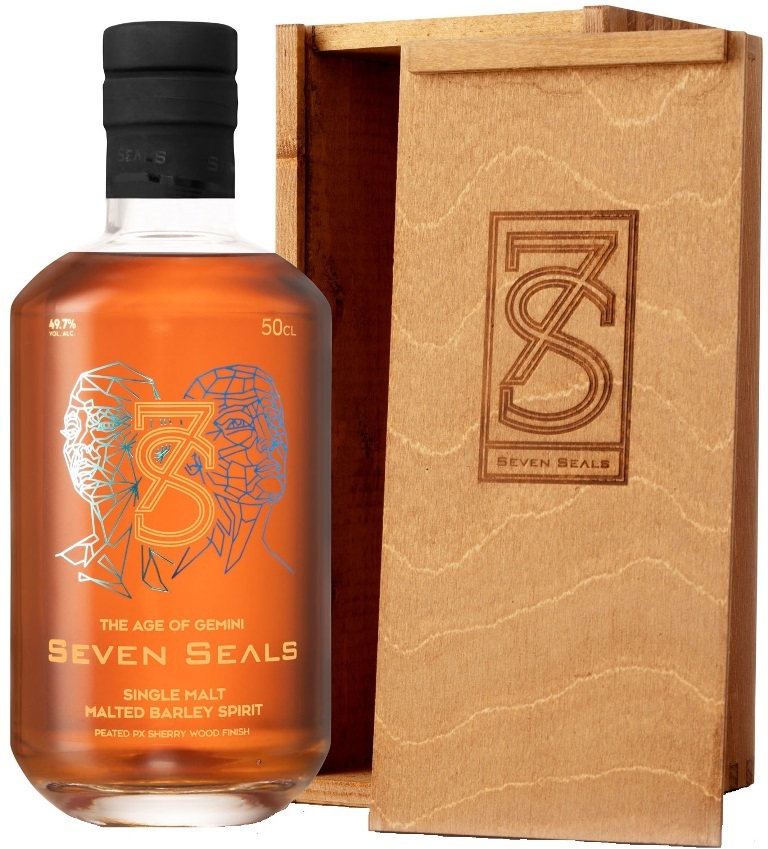 Seven Seals, Zodiac, The Age of Gemini, Single Malt — односолодовый виски, вдохновлённый знаком зодиака Близнецы. Этот знак зодиака характеризует обаятельных и переменчивых, любопытных, красноречивых личностей с обилием связей. Зодиакальные Близнецы "Севен Силс" предлагают соблазнительный аромат и выразительный вкус. Благодаря довыдержке в бочках из-под сладкого хереса PX и легкому торфяному дыму "Севен Силс" Зодиак Зе Эйдж оф Джеминай богат оттенками жареного миндаля, фруктового вина и кофе, а также перезрелых фруктов и лакрицы.